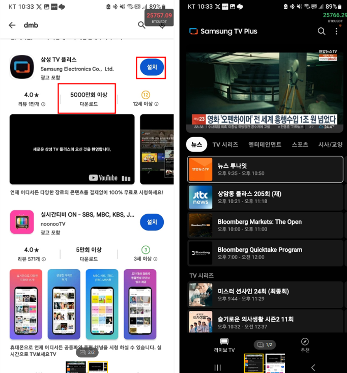 2. DMB TV 어플 설치하여 시청하기