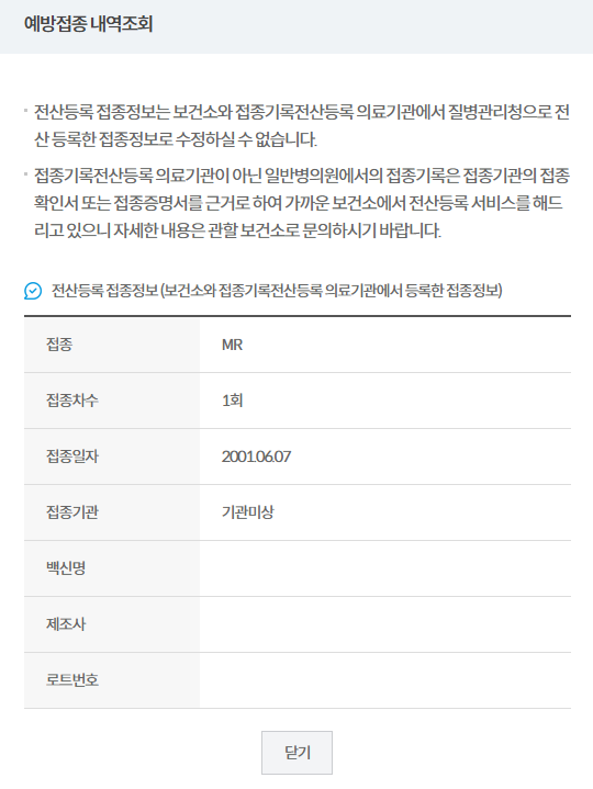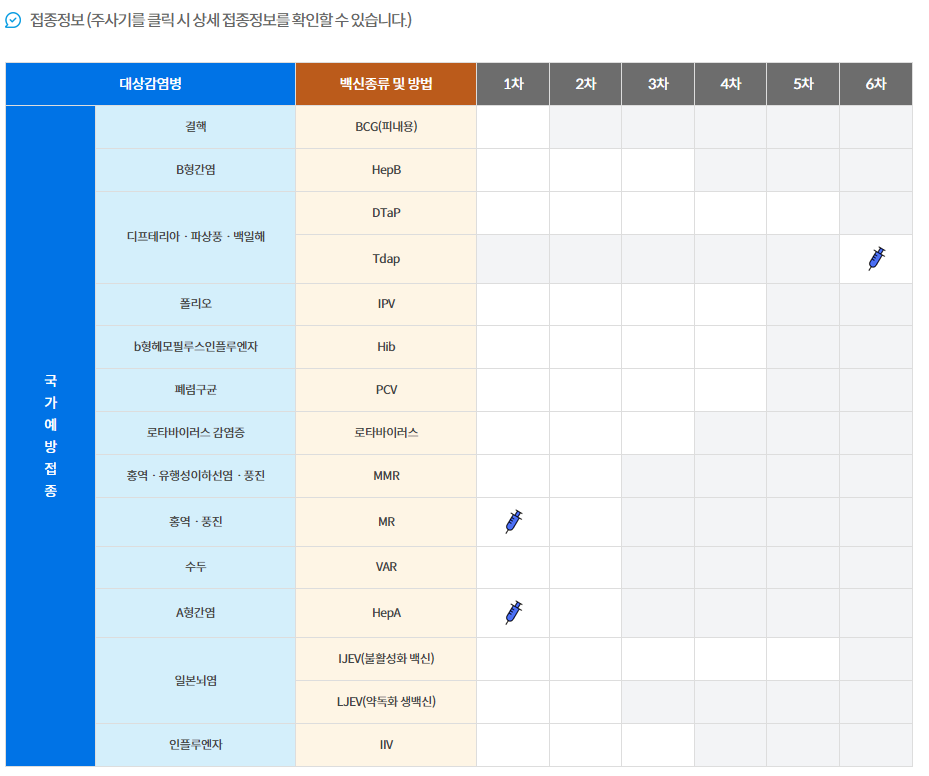 요즘 아이들은 주사를 많이 맞기 때문에 아래처럼 많은 정보를 볼 수 있습니다.