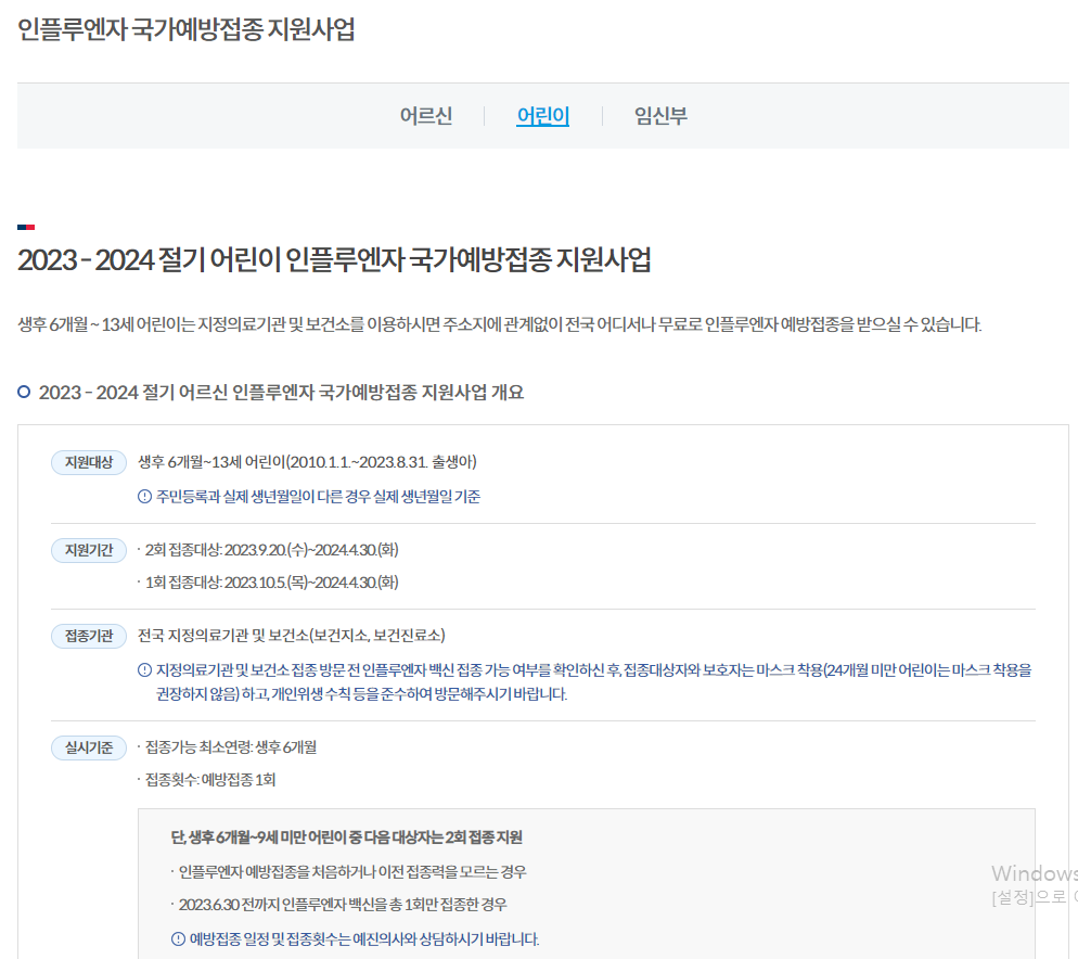 독감 예방접종 무료대상 확인하기