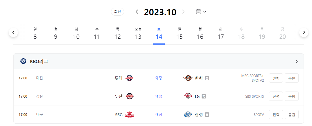 17일 KBO 정규시즌 마지막 경기가 있으며 비가 오지 않는다면 17일 최종 순위가 확정되고 이후 가을야구 일정이 발표될 것으로 예상됩니다.