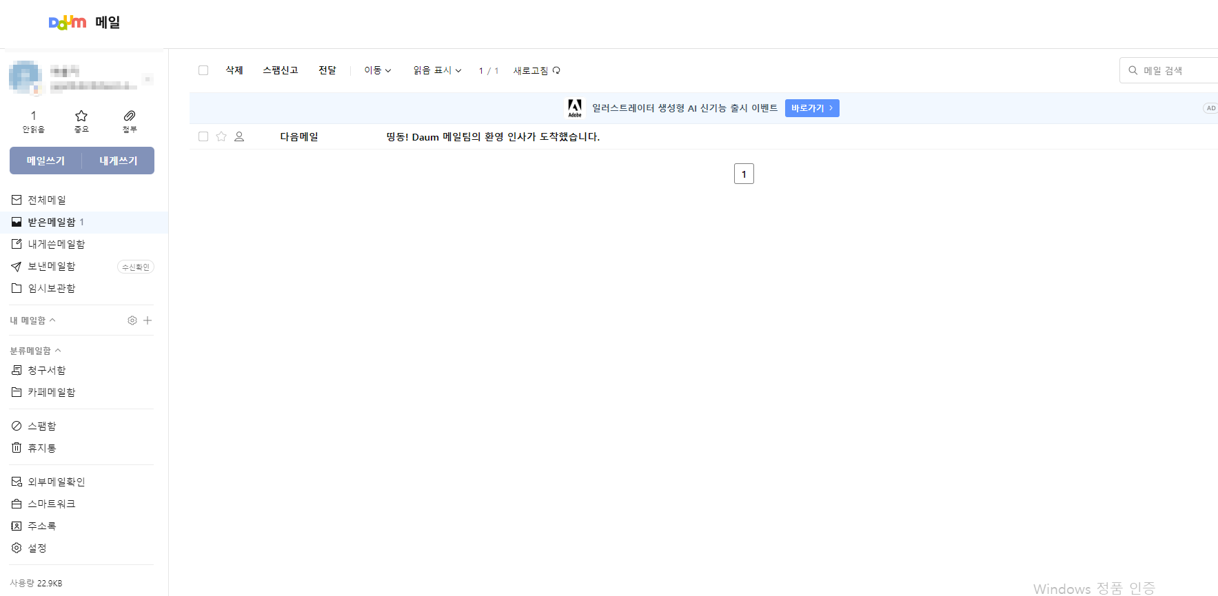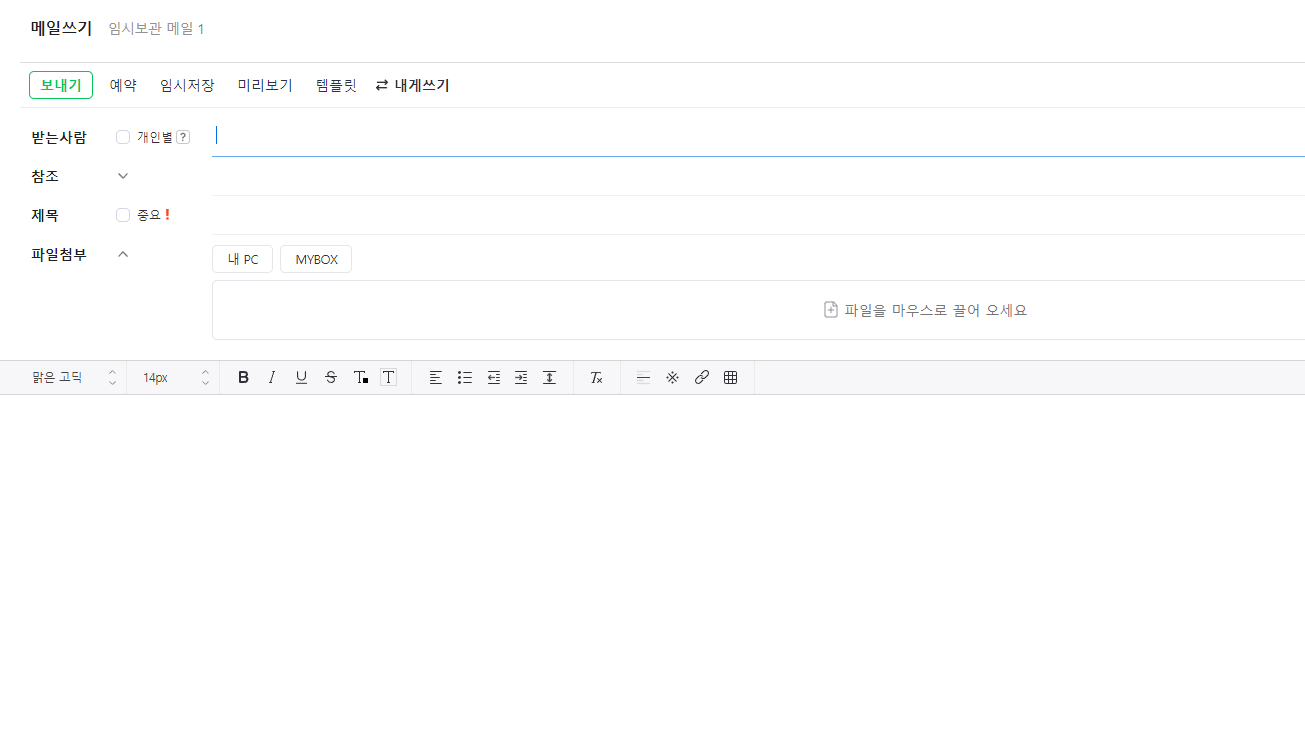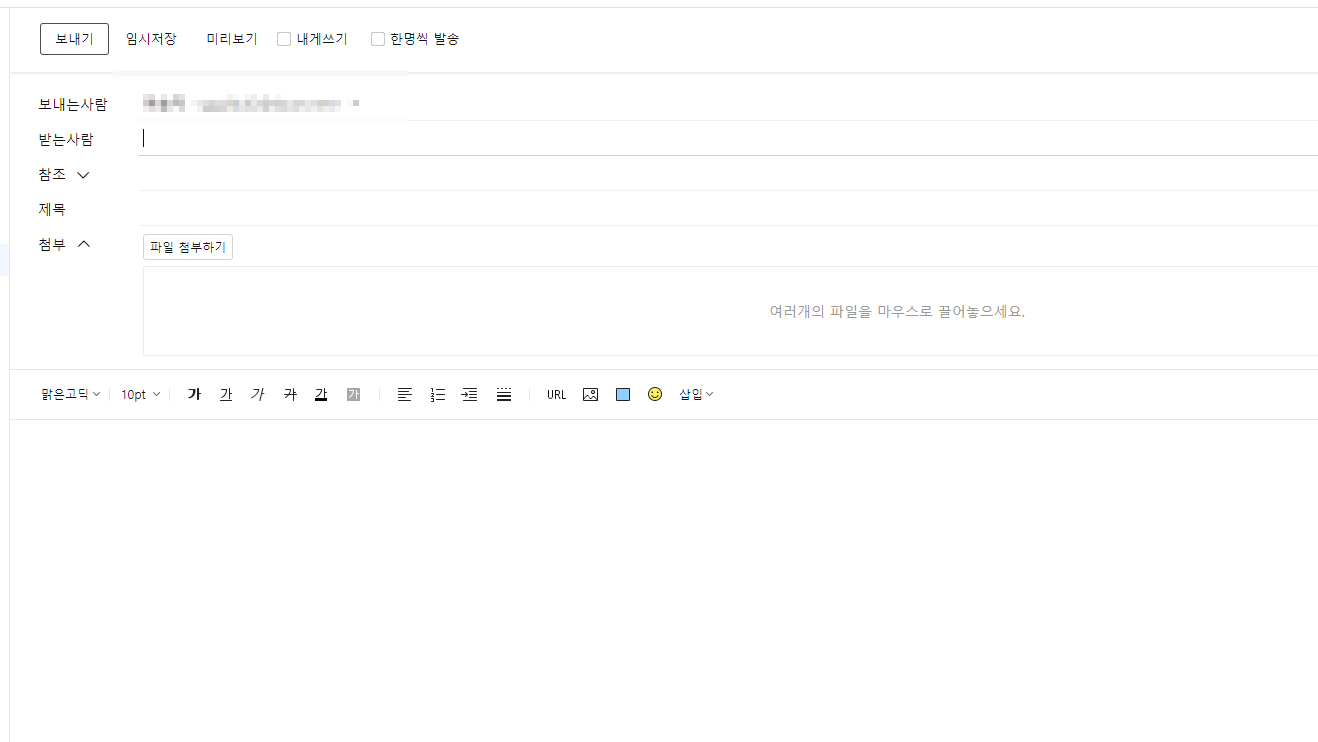 로그인을 하고 접속하면 아래와 같은 메일 화면을 확인할 수 있습니다.