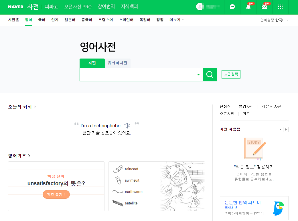 네이버 영어사전으로 접속하면 아래의 화면을 볼 수 있습니다.