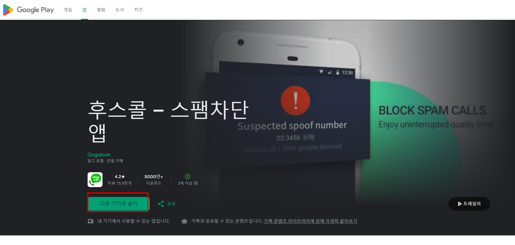 스마트폰에 스팸차단앱을 설치하면 전화가 왔을 때 바로 어떤 전화인지 스팸전화를 차단해주는 앱이 있습니다.